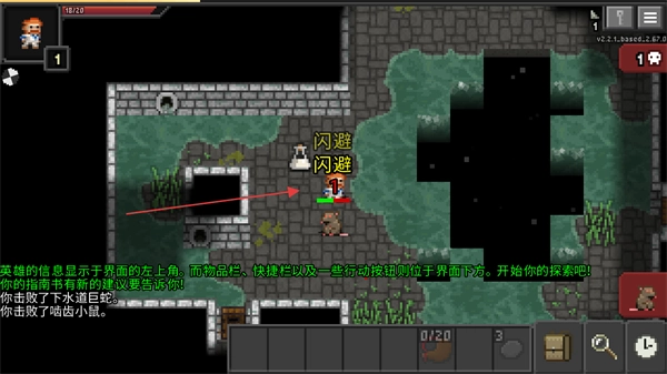根据提示进行闪避操作,操控角色躲开怪物的攻击,以此确保角色能够生存下来,并继续在地牢中展开探索。