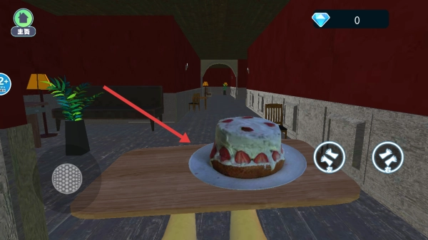 进入室内场景后,用左侧的虚拟摇杆来控制移动方向,稳稳地托着蛋糕顺着通道往前走,借助右侧的按键来调整托举的姿势,要防止碰撞和颠簸导致蛋糕掉下来。