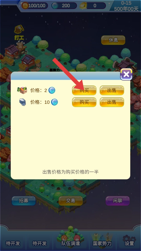 可以先把注意力放在物资交易板块上,这里既能购置蔬菜、矿石这类基础物资来做储备,也能把手里多余的物资卖出去换取资源,这样能为之后的经营铺垫好基础。