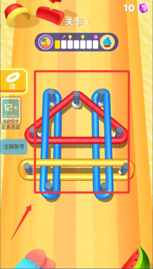 顺利解开所有弹绳后,依据提示把它们套到指定的物品上,达成目标就能成功通关,同时解锁新的关卡挑战。