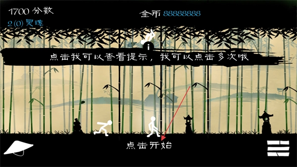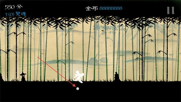 游戏进行时,点击屏幕来控制角色左右移动,与此同时要注意界面上分数和灵魂数值的变动情况。