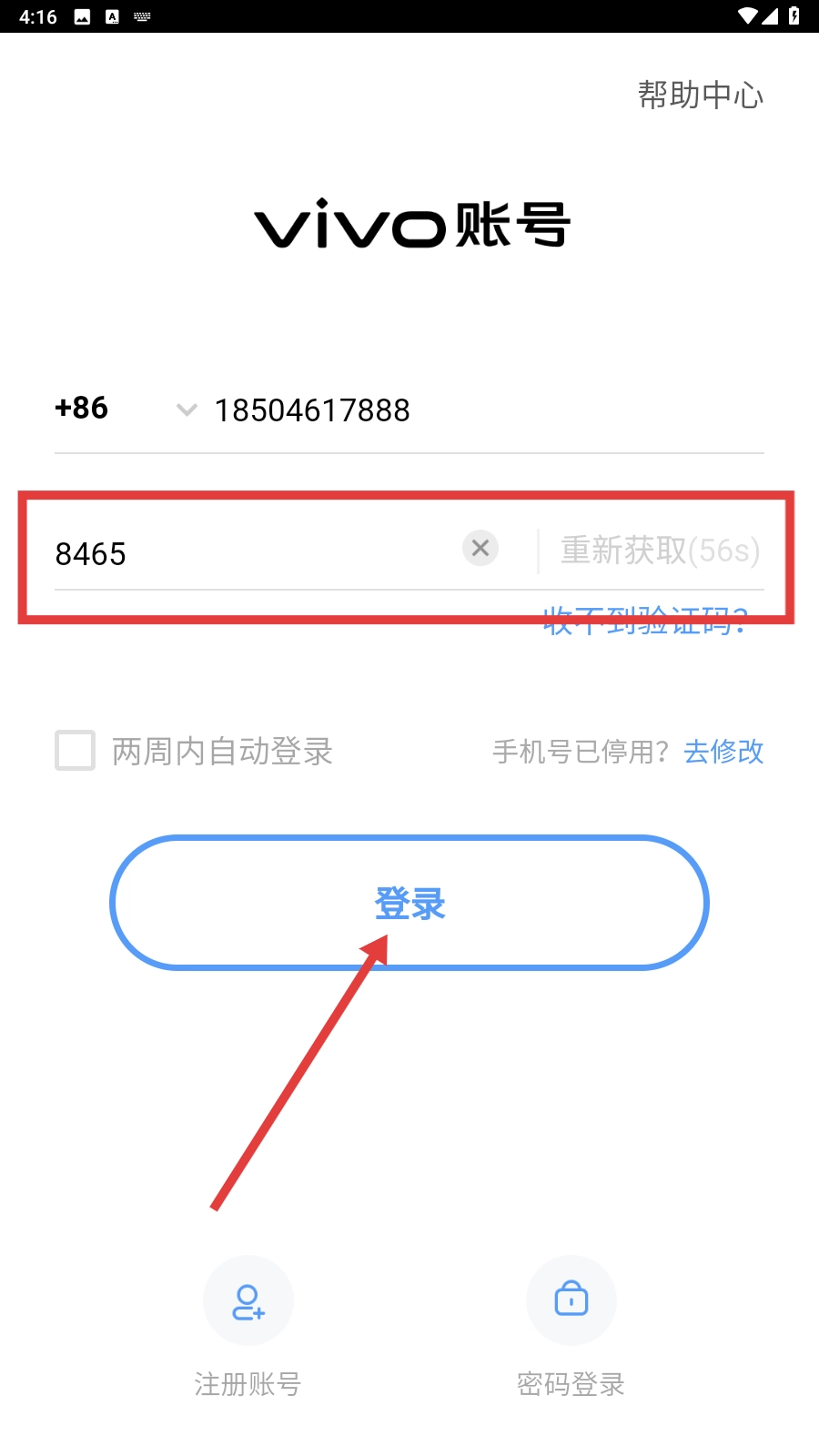 输入电话号码,点击【获取验证码】。