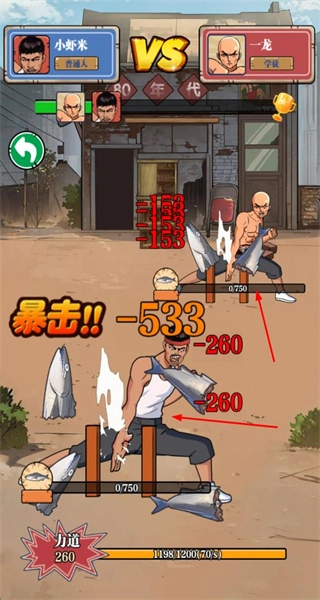 进入对战界面后,与对手展开较量,触发暴击时能造成高额伤害,通过快速降低对手血量来取得胜利。