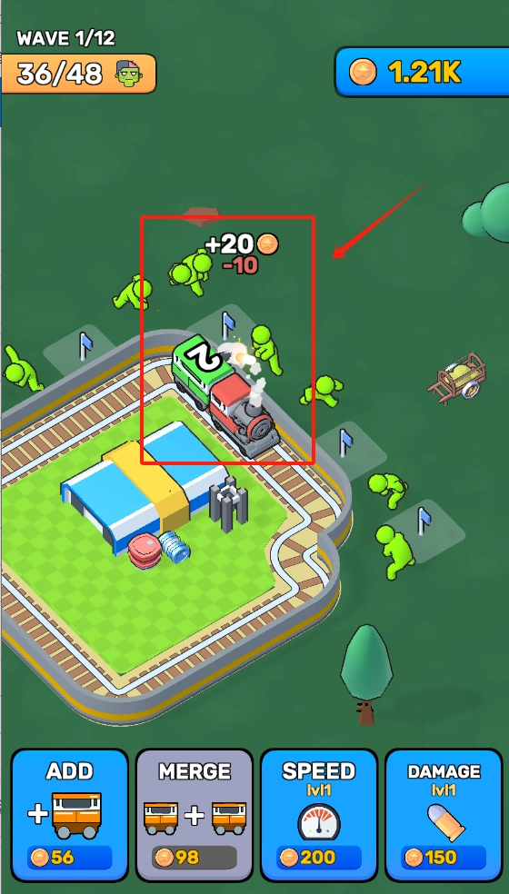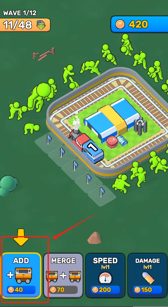 点击ADD按钮消耗金币召唤防御单位,以此阻挡绿僵尸的进攻,守护火车与建筑。