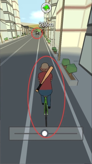 通过滑动屏幕来操控自行车的行进方向,在狭窄的巷道里保持平衡向前移动,要留意避开地面上散落的各类障碍物。
