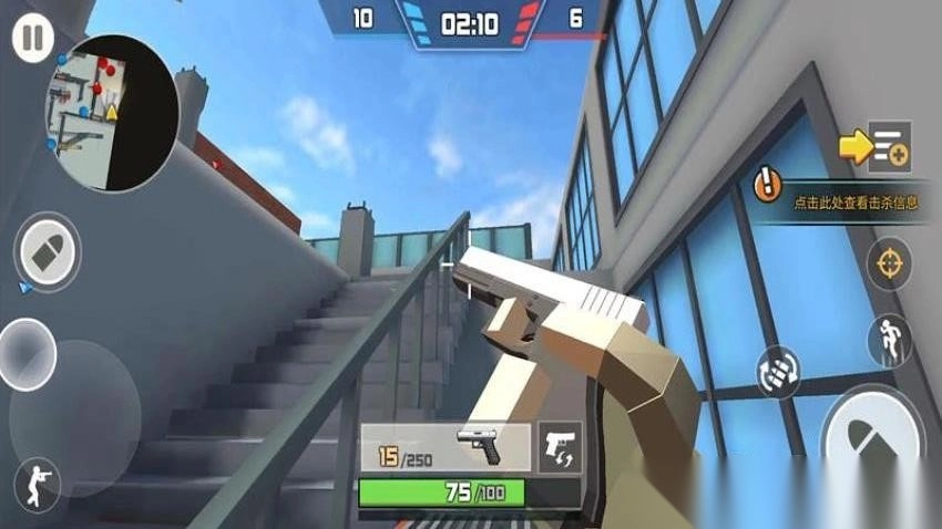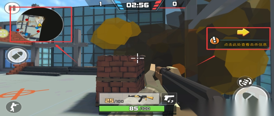 左上角的小地图能显示敌人的方位,右上角则呈现击杀相关的信息。