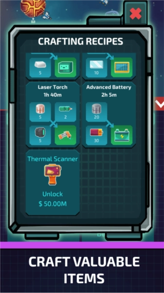 成长反馈清晰直观:从基础采矿设备逐步升级到高效自动化系统,从单星球开采拓展至多星球协同作业,每一次进阶都能带来可感知的收益增长与探索边界拓宽,明确的成长路径让玩家不断收获成就感。