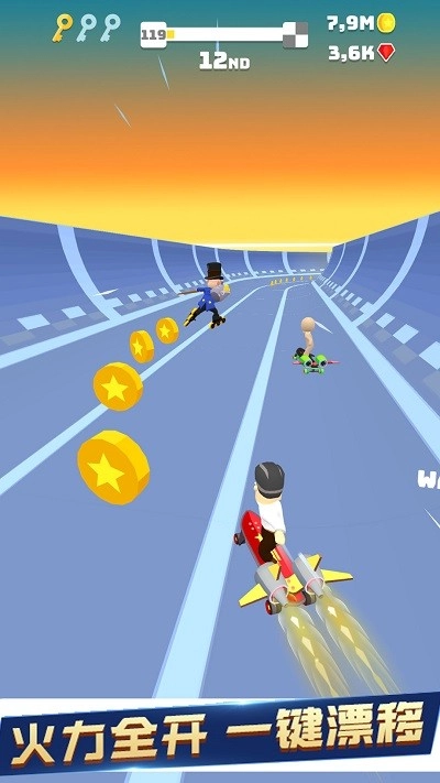 在《极限巅峰漂移》里踩着滑板在赛道上飞驰,速度简直快到飞起。沿途满是金币,边滑行边收集的感觉超爽。还能和其他玩家在线对决,比拼谁能率先冲过终点线。赛道设计得相当炫酷,各种急弯和跳台接连不断,玩起来特别刺激。游戏操作简单易上手,但想拿第一就得好好磨练技术。喜欢竞速类游戏的朋友可别错过,绝对让你玩得停不下来。