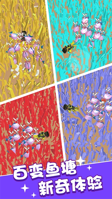 是一款融合模拟经营与策略战斗的休闲,玩家通过漫画剧情引导成为鱼塘主。游戏包含鱼苗养殖、鱼肉加工、鱼骨收集与海战军团四大核心玩法,支持离线挂机收益与自动战斗系统。建造木桩加工厂提升资源转化效率,招募士兵合成职业军队,在幽默画风中体验从养鱼达人到海洋霸主的成长历程。