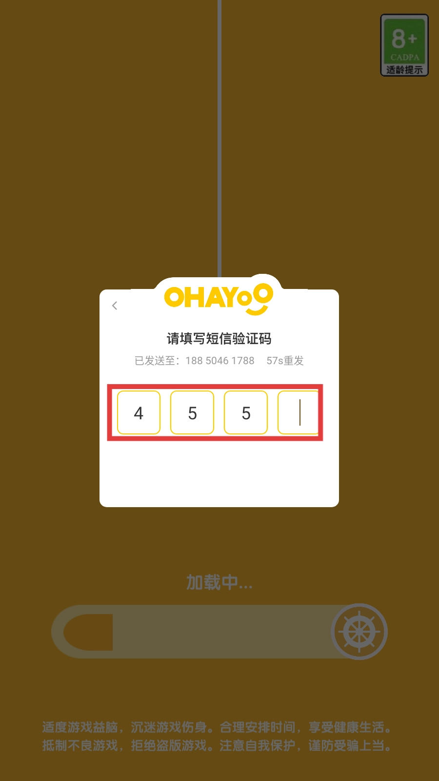 输入验证码,即可开始游戏。