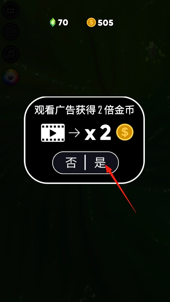 在操作过程中会弹出广告提示窗口,点击“是”后观看广告,广告播放完毕即可获取双倍金币奖励。这些金币能够用来解锁新的玩具或道具,玩家通过主动选择观看广告来积累金币资源,从而推动游戏内的解锁进度。