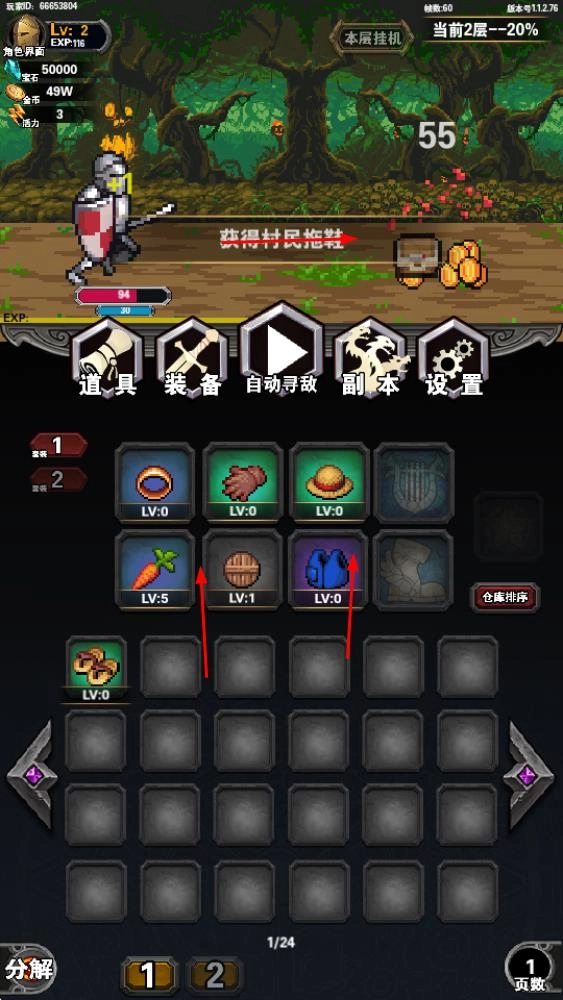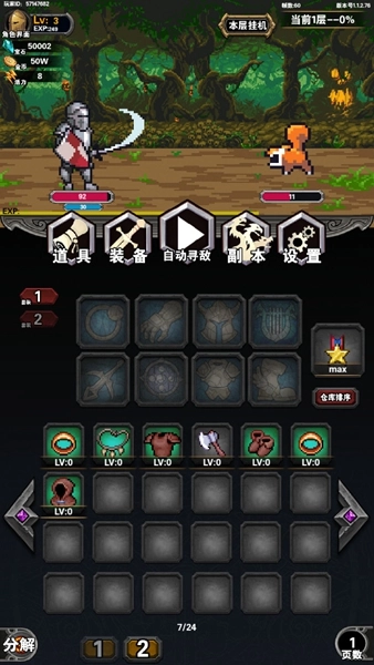 使用自动寻敌功能来探索地图,把关卡层数从第1层往第3层推进探索,期间要留意背包里的装备,进行合理的整理和使用。