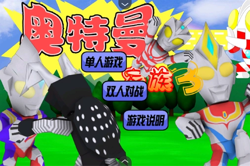 进入奥特曼家族3.0游戏后,我们能够选择单人游玩模式或者双人对战模式。