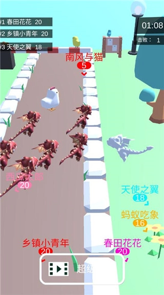 最终霸权争夺:当城堡内仅剩2至3支队伍时,便会进入最终霸权争夺阶段。此阶段要维持队伍规模上的优势——若自身队伍规模最大,可主动向其他队伍发起挑衅,逐个将其吞并;若自身规模并非最大,则可联合规模较小的队伍,一同对抗当前规模最大的队伍(游戏内支持通过“发送友好信号”来邀请其他队伍暂时结盟,结盟期间双方不会相互吞噬,待共同击败第三方后再解除结盟关系)。一旦战胜所有对手,就能成为城堡的新任国王,开启小飞龙派对的狂欢时刻。