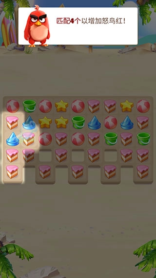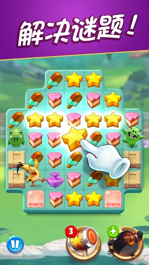匹配4个或更多的道具,解决愤怒的小鸟!