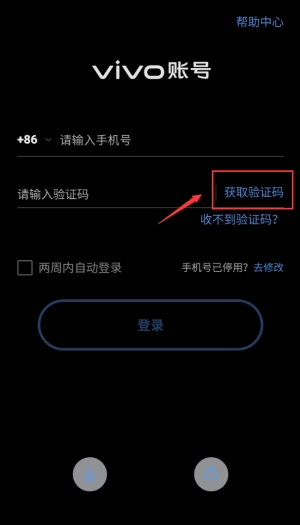 点击登录按钮,完成vivo账号登录。