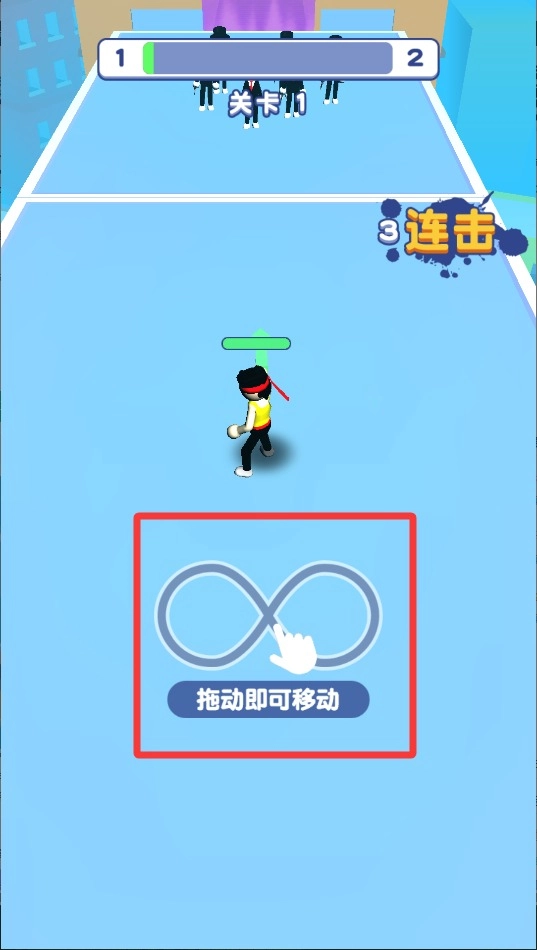 游戏开始时,通过手指在屏幕上滑动来操控角色移动,巧妙调整位置躲避障碍物,并且要靠近敌人进入能够发起攻击的有效范围,以此熟悉基础的操作技巧。