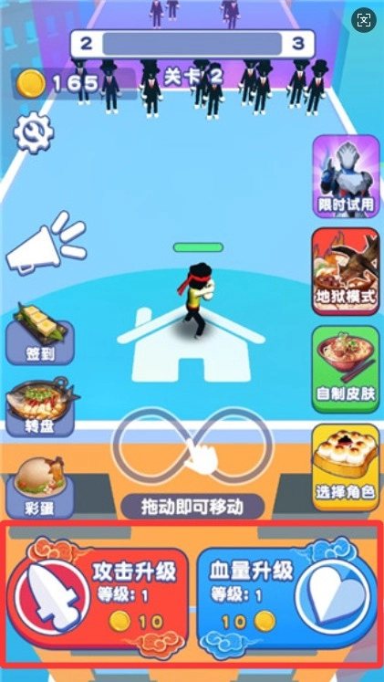 在主城界面,你可以用攒下的金币来强化角色属性。建议优先提升攻击力和暴击率,等战力增强后,再去挑战难度更高的关卡。