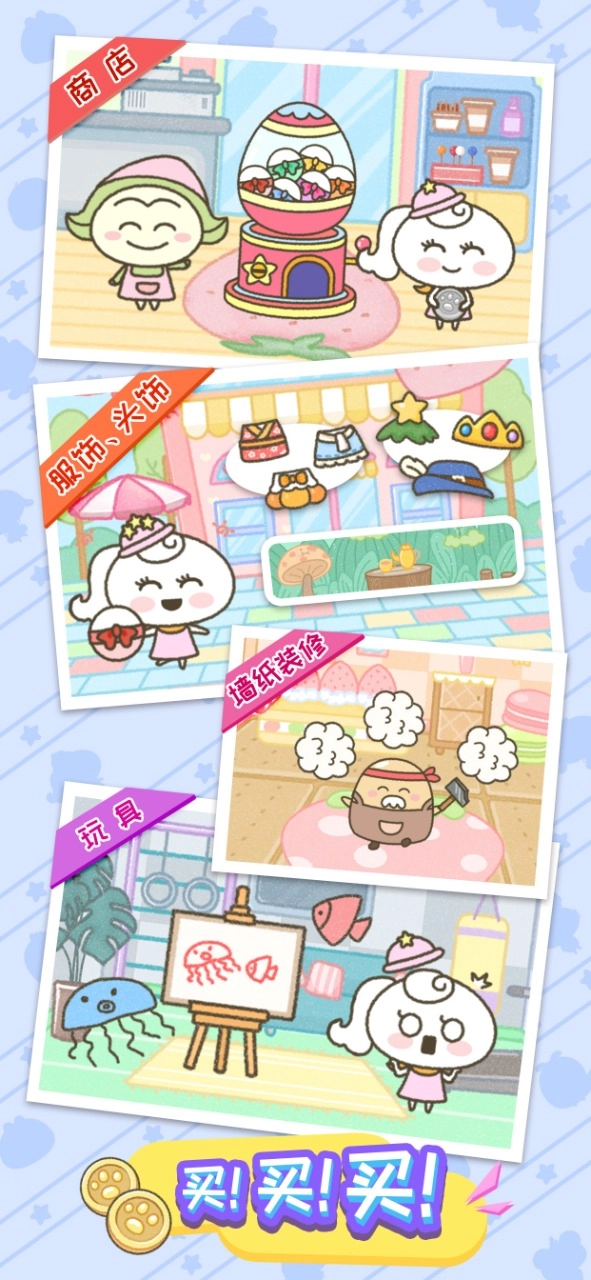 在镇上的游戏商店里,你既能买到各式各样的玩具与衣物,还能随心装扮自己的家。