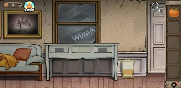 桌子上的东西拿掉,左边抽屉输入MUMA拿到钥匙,开门