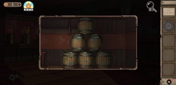 来到003,左边门口拿到小纸条来到右边的房间,纸条和酒桶符号可以得出9286,出来开左边的门。