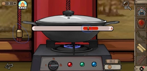 拿到金线,来003在左边窗户拿到刀子,把酒曲放到锅里,开火装到空酒坛里