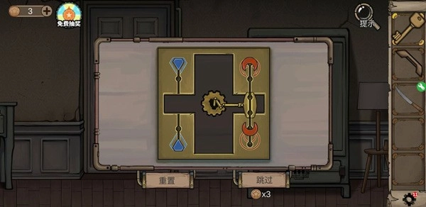 右边抽屉拿针 移动花盆有收集的照片 沙发黄毯下面棋盘拿到钥匙