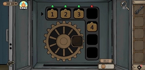 来到004,点中间柜子拿到写着3+的金币,放到保险柜,不是很喜欢动脑子的提供以下思路