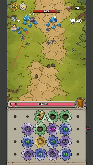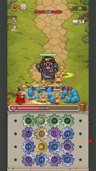 面对6/6波的Boss与敌人时,要留意自身血量的变动,借助齿轮效果来集中火力攻击敌方单位,从而顺利通过这一关卡。