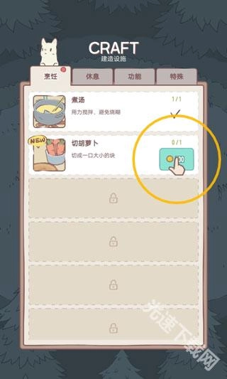 你能够在森林里搭建一些新的设施与设备,将猫咪的生活环境改造得符合你的心意。
