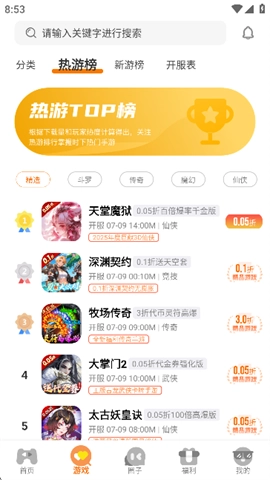 在游戏分类页面,各类游戏被巧妙划分,无论是三国题材还是玄幻风格,你都能轻松找到自己想要的游戏。