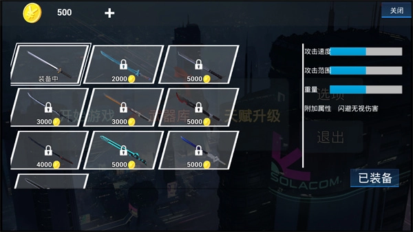 进入游戏后,在开启闯关之前,你可以先进入武器库,挑选一把合适的武器。