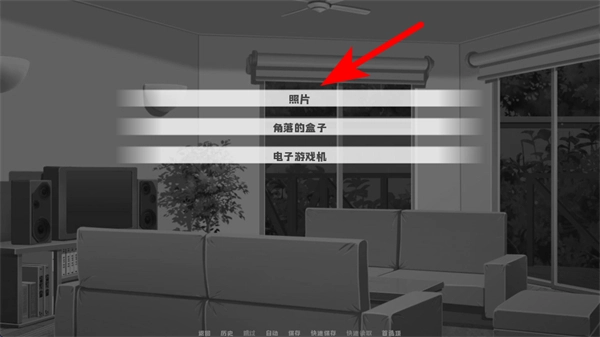 进入游戏房间场景后,我们选择互动选项里的照片,这是调查场景线索的关键步骤,选择后就能得到相关的剧情信息。