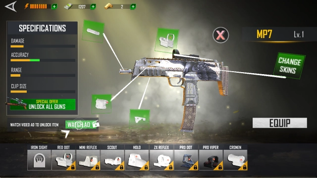 解锁的武器还可以对各种部件进行更换,提升性能。