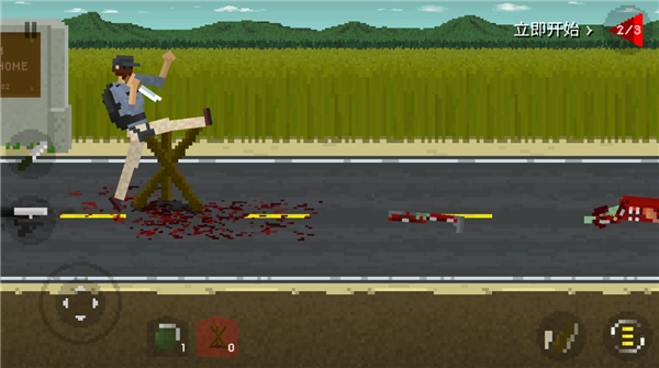 准备工作完成后就能进入游戏了,过一会儿屏幕上会逐渐出现僵尸。你可以布置陷阱,也能使用各类枪械或者斧头等近战武器来消灭它们。需要注意的是,不要攻击僵尸的头部,得瞄准它们的下半身部位攻击,这样才能让僵尸瘫痪。
