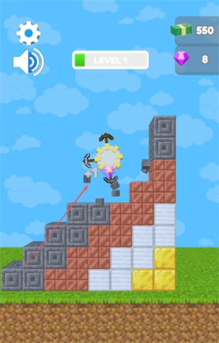 钻头能够敲碎方块,从中收集金币与钻石,敲碎的方块数量越多,获取的资源也就越丰富。