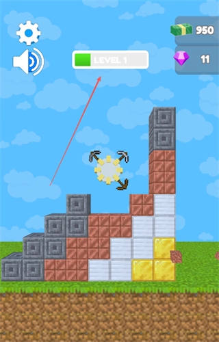持续挖掘方块,积攒金币与钻石,用来解锁更高级的钻头或是开启新的关卡。