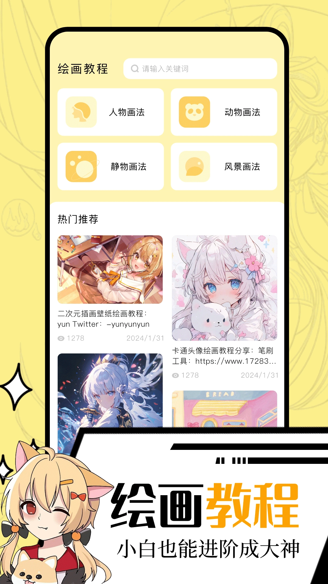 美绘是一款功能全面且强大的绘画软件,它整合了动漫、风景、人物、动物等各类精美绘画模板,能满足你多元化的创作需求。你可以尽情施展创意,绘制出独属于自己的艺术作品。美绘还具备完善的作品管理功能,让你能够轻松地整理、保存和分享自己的画作。此外,它还配备了绘画教程,无论你是绘画初学者还是爱好者,都能在这里找到提升自我的方法与灵感。美绘,让绘画变得更简单、更有趣,也更具成就感。