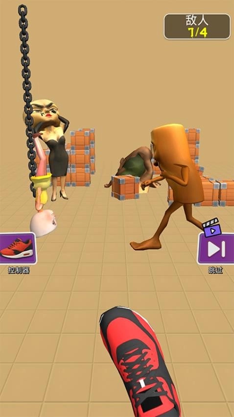 游戏里配备了各式各样的控制器,像刀具、鞋子、拳击手套之类的都有。