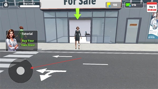 游戏开始时,用左边的虚拟摇杆控制角色移动,前往那个标着ForSale的药房。