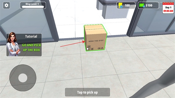 进入药房后,走到地上的箱子旁边,按照提示点击屏幕就能拾取箱子。
