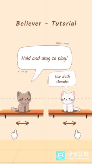 首先在本站安装《猫咪二重奏》,安装完成后打开游戏。进入游戏后,需要用两个拇指进行滑动操作,以此来控制猫猫移动。