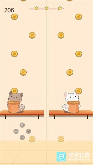 在猫咪二重唱这款游戏里,玩家得点击屏幕,让两只猫咪都能吃到食物,而且食物是绝对不能掉落的哦。