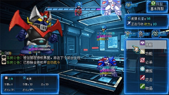 玩家可以自由挑选不同类型的机甲来组建阵型,并且能自由选用各种各样的阵型。
