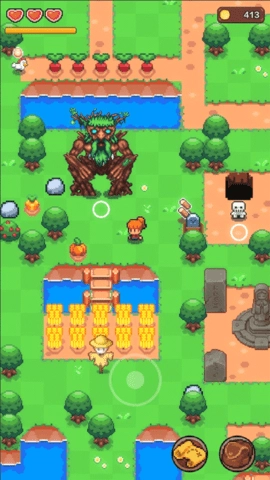 朝着斧头道具的方向走去,你就能开始砍树啦。这个农具用处可不少,除了能砍树,还可以用来挖矿石和胡萝卜呢。